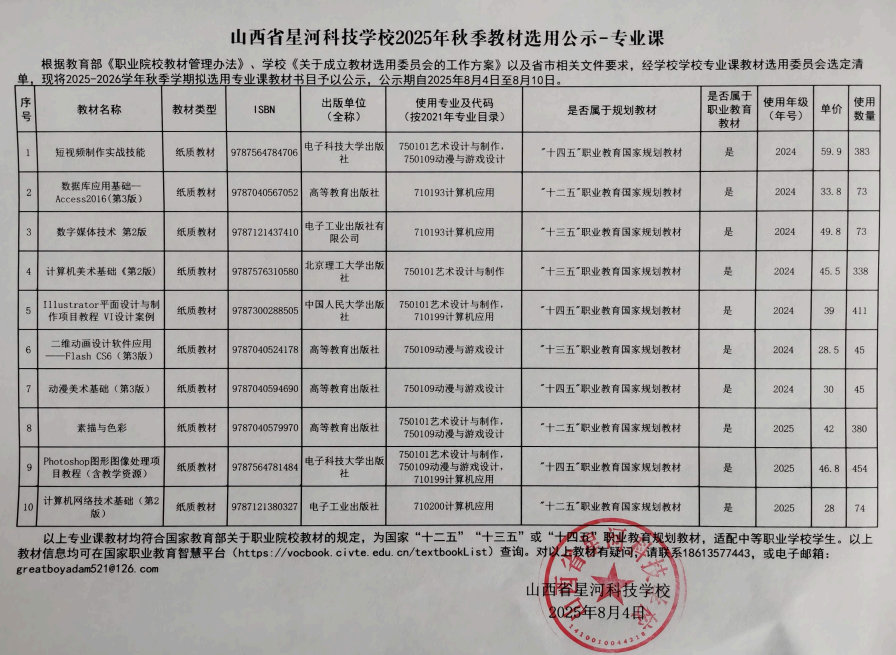 2025年秋季教材选用目录-专业课