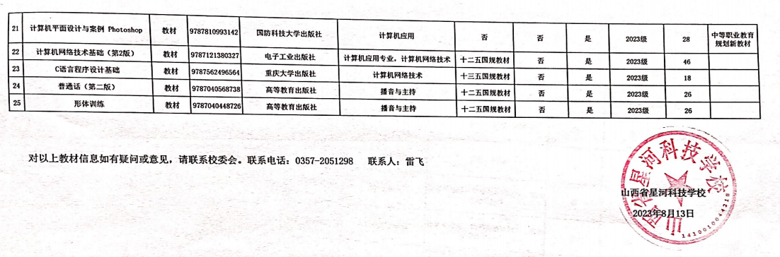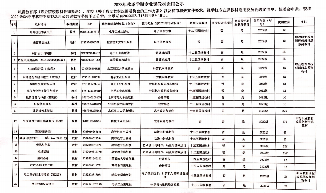 2023年秋季学期专业课教材选用公示