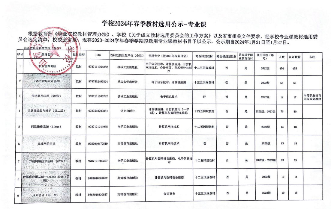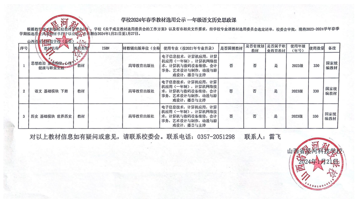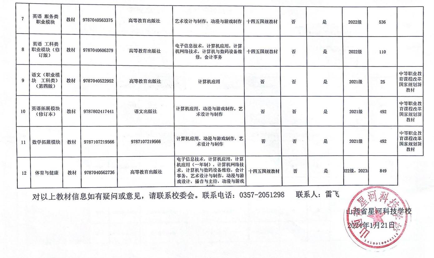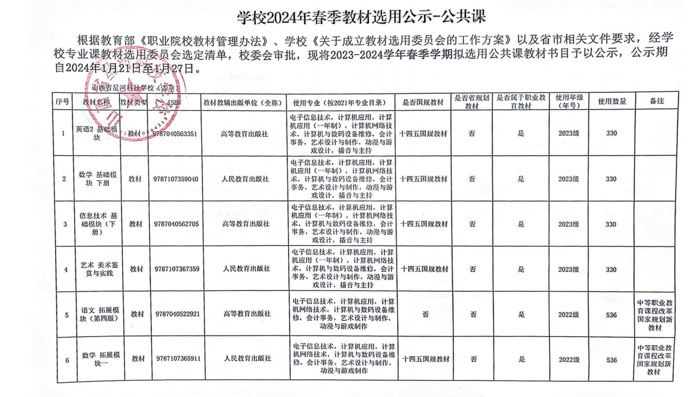 2024年春季学期教材选用公示